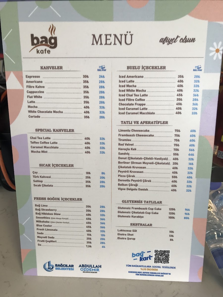 bağcılar bağ cafe millet bahçesi Menu